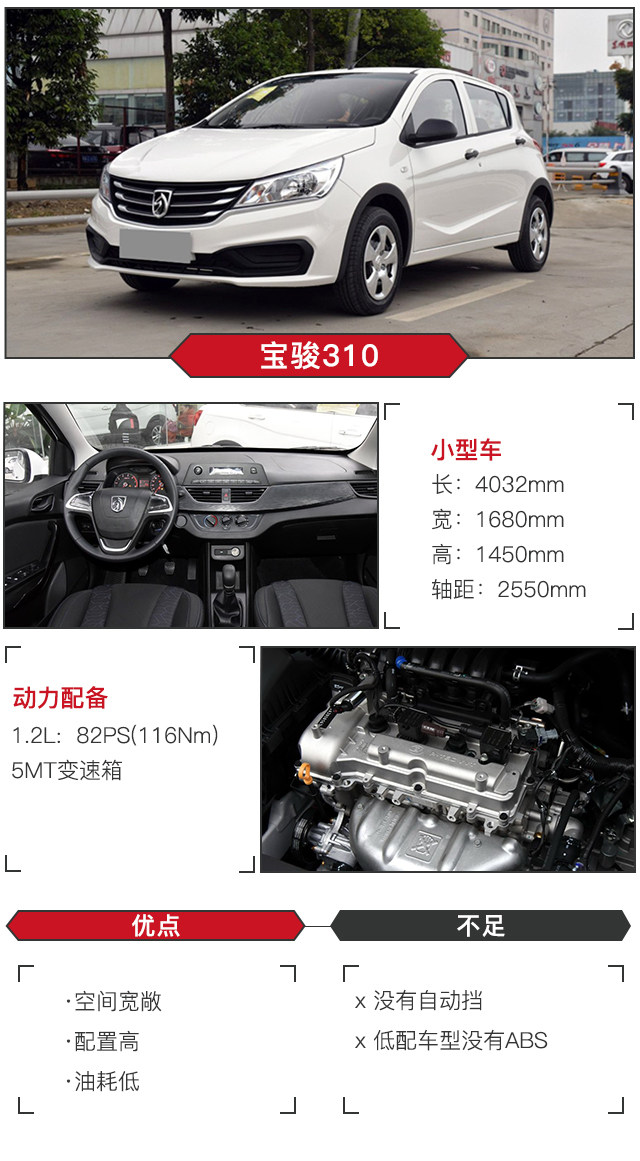 宝骏310的销量可以说是蹭蹭地往上涨,最根本的原因还是待购青年太多了,而310刚好能够满足它们的需求,价格便宜配置高,空间够用油耗低。310作为年轻人的第一台车再合适不过了,想想同价位除了选择310之外还能选择什么?只能选奇瑞QQ或者比亚迪F0咯...什么你嫌小?这不还有刚上市不久的310W么!号称空间堪比中型车,4.28万起步你还等什么?