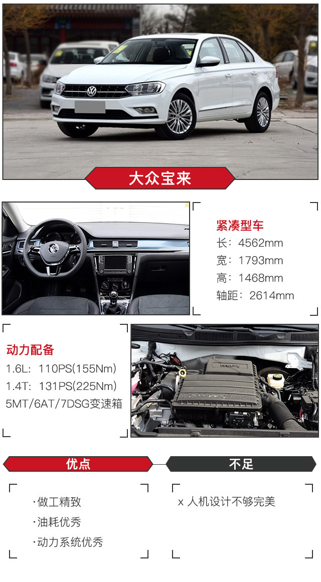 宝来在这个价位里的实力很强,它有着不逊色于日系车的油耗表现,而且底盘表现十分优秀,再加上空间和外观上都有不错的表现,宝来改款之后销量也十分高。这个价位想要购买紧凑型车的话与其选择一台日系车,不如买一台宝来更加合适。