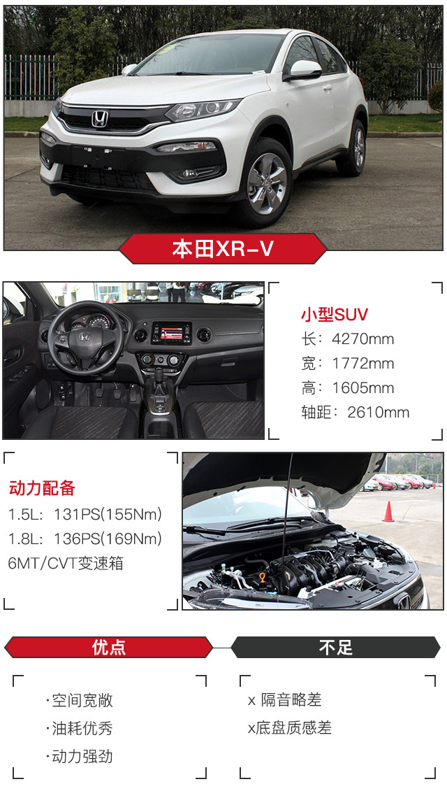 XR-V和别的SUV不同的地方在于它的油门十分灵敏,并且CVT的变速箱动力输出相当平顺,因此在市区驾驶XR-V乐趣感就已经很好了,尤其深得年轻人的喜爱。再加上宽敞的空间和不错的油耗(毕竟对于年轻人来说,油耗可是十分重要的,买得起开不起就尴尬了),XR-V是这价位很值得选择的一款SUV了,当然你得忍受本田车的家族特征“噪音偏大”的问题。