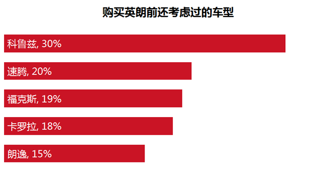 此次参加调查的有302位车主,根据他们购车前的选择来看,最看重的当属同为美系精英的科鲁兹,比例达30%;其次还有速腾,超过20%的人会考虑;再次是福克斯与卡罗拉,比例均接近20%。从预购车型分析,科鲁兹与英朗技术实力互通,确实是比较纠结的,最后决定购买的关键因素一般都是在优惠幅度上。而想要购买中高配英朗的车主也会着重考虑速腾,毕竟价格方面与降价后的速腾差距不大。