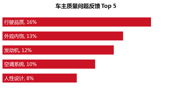 发动机问题则是第三位,冷启动时怠速不稳以及噪音偏大的问题同样很让车主比较疑惑。