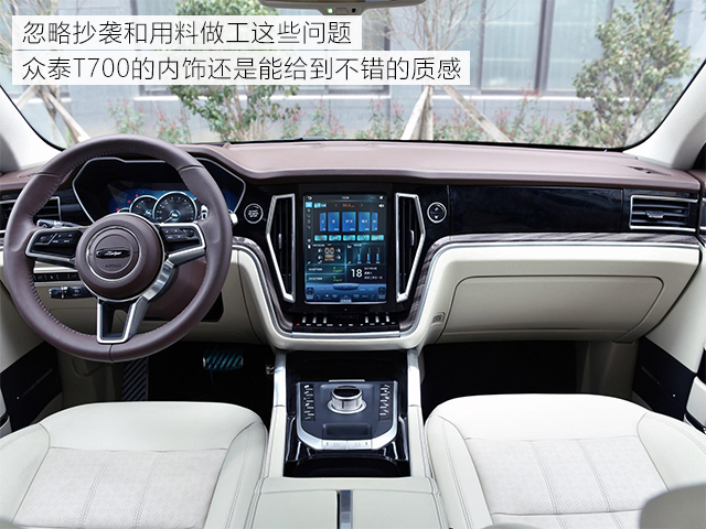 T700的内饰虽然说不上十分精细,但由于采用了一些搪塑材料作为内饰包裹,再加上棕色和米白的配色,整体的质感并不会很掉价。