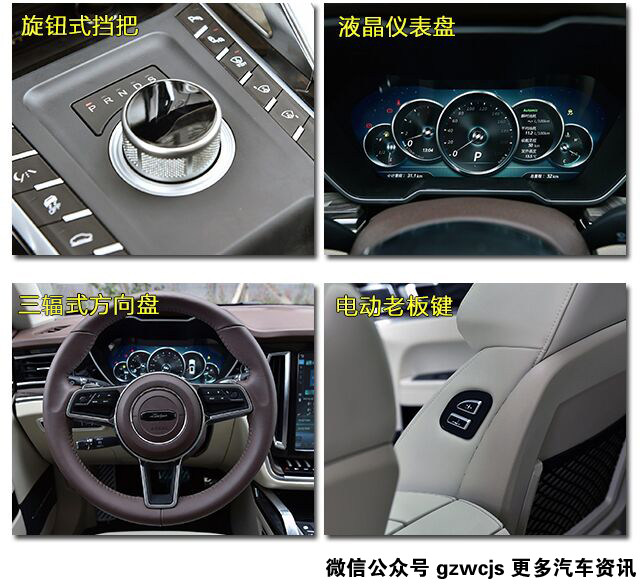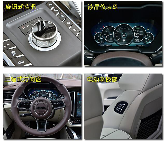 此外还有捷豹路虎同款的旋钮式挡把、可以随意切换样式的液晶仪表盘、保时捷同款的三辐式方向盘、副驾靠背的左边还装有电动的老板键,表面上看是可以提升逼格的,但对于内行人来说,这样的抄袭行为还是要批评一下。