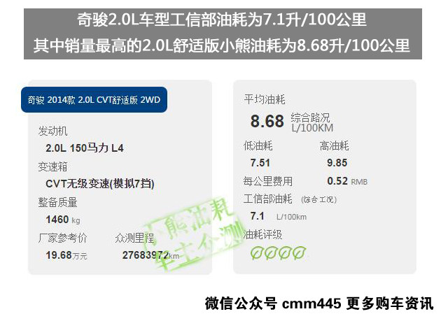 虽然说奇骏使用的CVT变速箱开起来运动感不够好,但是油耗表现还是比较不错的,CVT变速箱的节油效果明显,不过在对手本田丰田也开始使用CVT之后,日产的CVT就没太多优势可言了。