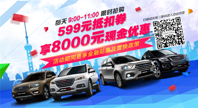 在10亿红包盛宴的同时,哈弗又在哈弗商城和汽车之家车商城上推出了“限时抢购”活动。针对哈弗H6升级版1.5T 6MT、红/蓝标H6运动版1.5T 6MT、蓝标H6 Coupe1.5T 6MT四款车型,每天上午9:00-11:00,线上支付599元购买抵扣券,购车时599元可直接抵用车款,抵扣券还可抵扣8000元现金,活动截止至4月30日。这是哈弗继“十亿红包”之后为粉丝献上的又一重磅大礼,此举让很多消费者大呼开心。