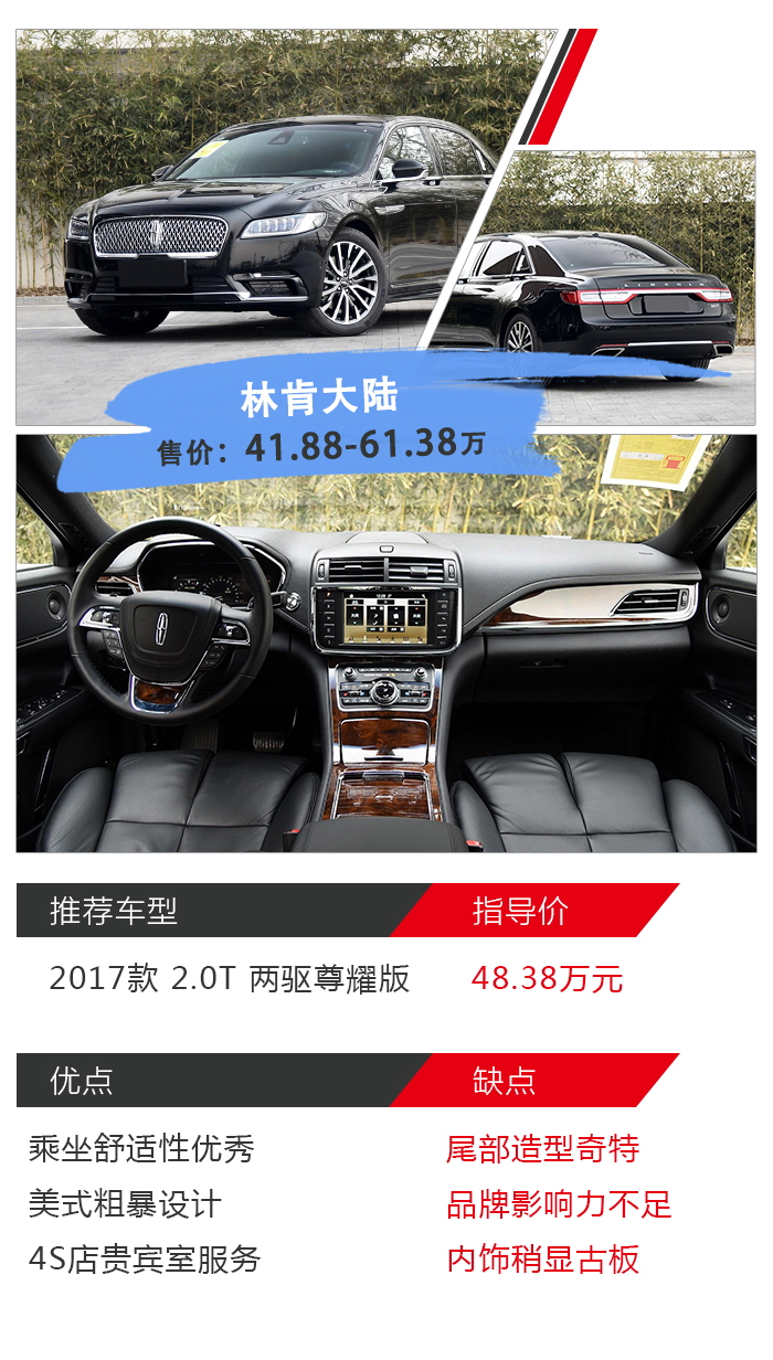 作为一款林肯品牌下的中大型豪华轿车,气场是你完全不需要担心的,一看到这辆林肯大陆,就知道车主肯定是有品位、有地位、有名望的人。无论是车外还是车内,都在彰显着一份美式豪华,虽然称不上什么科技感,但是总能够让你体会到什么是尊贵。