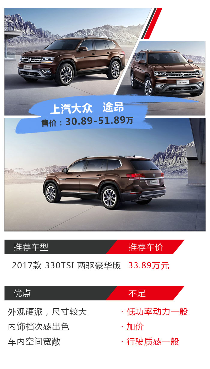 作为一款中大型SUV来说,30万多起步价确实很有优惠力。而且就看途昂的配置也明显看得出大众是很有诚意的。就算是最低配都是值得购买的,满足日常使用没有太大的问题。然而,最新的消息会让那些想买途昂的人会望而却步的。听说直接加价3到5万;这样一来都能上奥迪Q5了。就算有7座,也没有那么大的勇气加那么多钱吧?