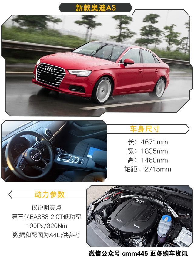 奥迪A3和宝马1系三厢可以说是最直接的竞品,但是奥迪A3比较让消费者放心的是它全系使用的都是4缸发动机,除用2.0T的EA888取代1.8T的动力总成外,1.4T的EA211系列也得以延用;而1.4T的EA211发动机技术也已经非常成熟,在国人普遍不太能接受三缸的情况下,奥迪A3依旧有它的竞争力。
