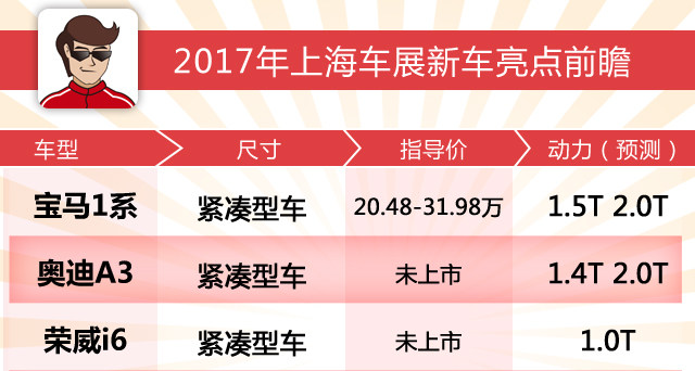 自主品牌想要争取一些市场份额的话只能走创新之路,就例如从外观设计打破这一僵局,上汽荣威就是少有能打破这一僵局的品牌,荣威i6的外观无疑得到不少人的芳心。另外,合资品牌中豪车品牌阵营在轿车领域也下足“猛料”,宝马推出UKL前驱平台的宝马1系三厢,不少消费者都垂涎20万起步的价钱,而在宝马1系上市之后,其强劲的竞争对手奥迪也打算在即将到来的上海车展推出全新的奥迪A3,新款的A3改变还真令人惊喜的,有着狠狠把宝马1系拉下马的势头。