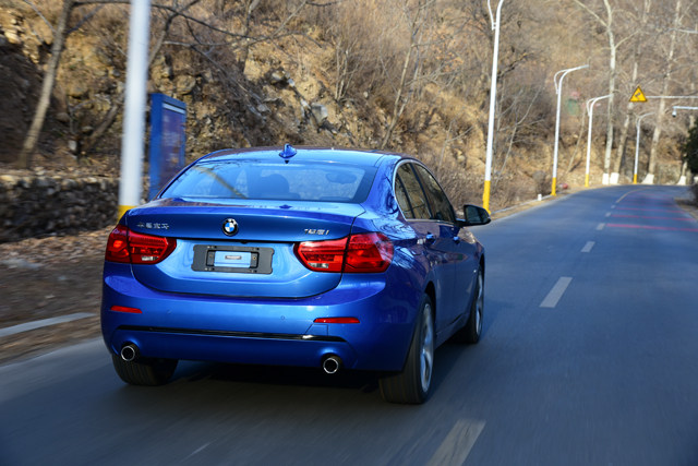 除了变为前驱驱动,还有“鸡腿”也没有了,国产化的宝马1系三厢在许多设计元素上还保留了很多宝马元素,因为定位为紧凑型车,车长只有4456mm,整体上看比宝马3系臃肿不少,假如把车身拉长一点的话,差不多就和宝马3系一样的外观了,形似神似。
