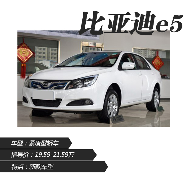 新车将推出3款车型,售价区间为19.59-21.59万元。以北京为例的补贴幅度为6.6万(国家4.4万/地方2.2万),终端售价区间为12.99-14.99万,此次上市的2017款比亚迪e5 300在外观和内饰方面与现款车型基本保持一致,主要的改变就是针对车内配置进行了升级。
