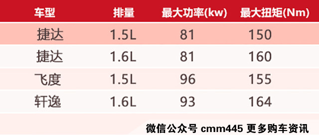 从数值来看,两者在最大功率上是处于相同的81千瓦,虽然两者功率相同,但无疑1.5L排量比起1.6L更低,所以新发动机升功率更高,也就是说明了热效率更高。而扭矩方面因为排量的降低而降低,相比之下低了10牛米,会对驾车过程稍微有点影响。总的来说,这个发动机在参数依然是低于于本田日产等厂商的。