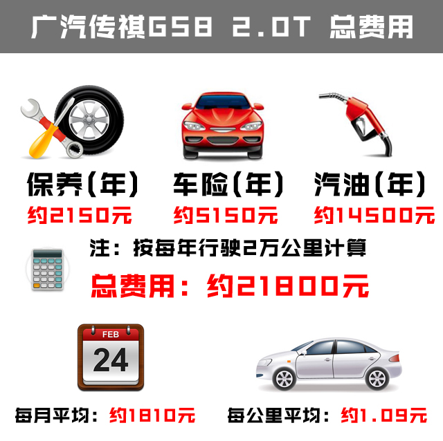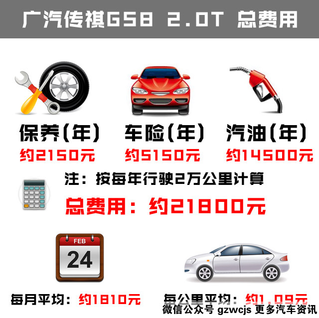 2.0T的传祺GS8养车年费用约21800元,教授觉得此刻会有不少关注传祺GS8的亲们比较担心,养这么大一台SUV的费用确实不低,加上贷款买车的压力,这样不但不能提供生活便利,更有可能给生活带来添堵。