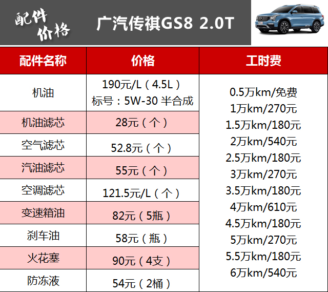 广汽传祺GS8大家都非常熟悉,教授在这就不过多介绍了。作为一款用2.0T发动机的7座SUV,不少人比较担心传祺GS8的养车成本会不会太贵。相比合资品牌车型,传祺GS8的保养并不贵,贵就贵在保险和燃油费用,下面就来看看相关的数据吧。