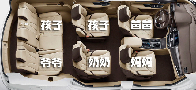 家庭五六口周末出游,五座车非常尴尬,孩子最多就是被大人们抱着坐后面,舒适性不谈,至少安全是没有保障的。所以,7座车的MPV能够很好地顾虑到这个问题,2+2+3的座椅布局,爸爸开车,妈妈坐副驾,第二排座椅孩子们能固定坐到安全儿童座椅上,第三排的空间也足以给爷爷奶奶身材比较矮小的乘坐。