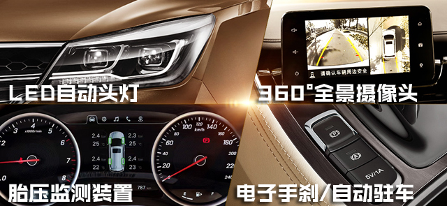 软件配置方面的安全辅助功能也不少,就例如360度全景可视、胎压胎温监测装置、电子手刹EPB+自动驻车Auto Hold、自动大灯以及感应式雨刷,主流的安全配置都具备,这些有多重要,教授也不一一叙述。