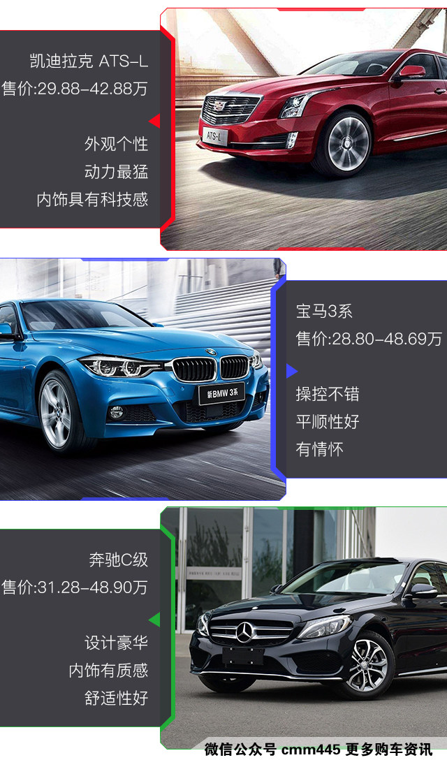 对比前面两者,极端比较的情况下,凯迪拉克ATS-L的舒适性比奔驰差点,变速箱平顺性比宝马差点。毕竟,那些都是奔驰、宝马他们的杀手锏。但是如果整体来比,凯迪拉克ATS-L在动力、操控性、配置等方面远超他们一大截!没错,真的是一大截的距离。哪怕是油耗、乘坐空间,凯迪拉克ATS-L也占有略微的优势。要知道,ATS-L可是比他们俩有更好的动力和操控性哦!奔驰输了操控,而宝马则输在了三缸。