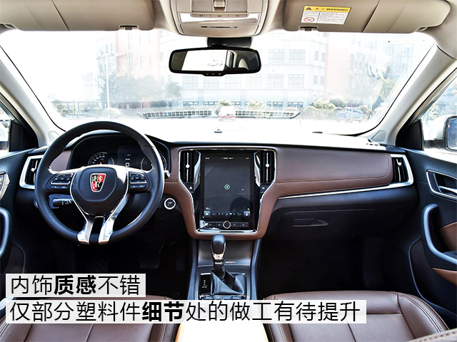 内在的配置最有看点的恐怕是YunOS系统了,和RX5上的一样,能实现语音控制、在线互联、移动支付等功能。内饰方面能看到表面有皮质的包裹和红色缝线的工艺,而中控台下方则依旧是塑料材质,做工方面也只能算一般。