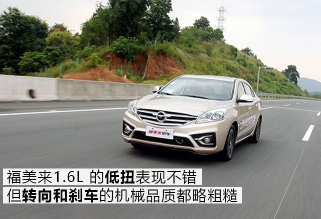 行驶方面,福美来采用1.6L自然吸气发动机+6MT/6AT的动力系统,最大马力125Ps,特点是扭够强,起步有劲,但中后段就没有爆发力可言,想降挡超车得预留长一点的距离了。底盘的舒适性是值得称道的,由于是后独立悬架,所以应付一般的颠簸起来还是会比较得体。还需要注意的是福美来采用的是机械液压助力的方向盘,力度偏沉,指向并不精准,而刹车的脚感又不线性,所以驾驶该车的话,需要一些时间适应TA的机械特性。