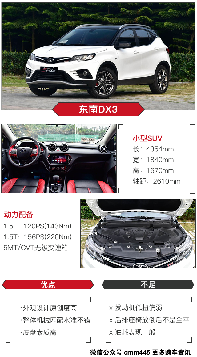 得益于宾尼法利纳的外挂加持,东南DX3拥有这个级别里少见的原创高颜值,而且这种好看是带有底气的。1.5L跟1.5T发动机来自三菱的4A91/4A91T系列,其中1.5T发动机匹配邦奇的CVT变速箱,整体表现足够流畅,涡轮迟滞不明显,不过平顺有余后劲不是特别足,但也比一众对手的1.5L/1.6L发动机表现要给力。