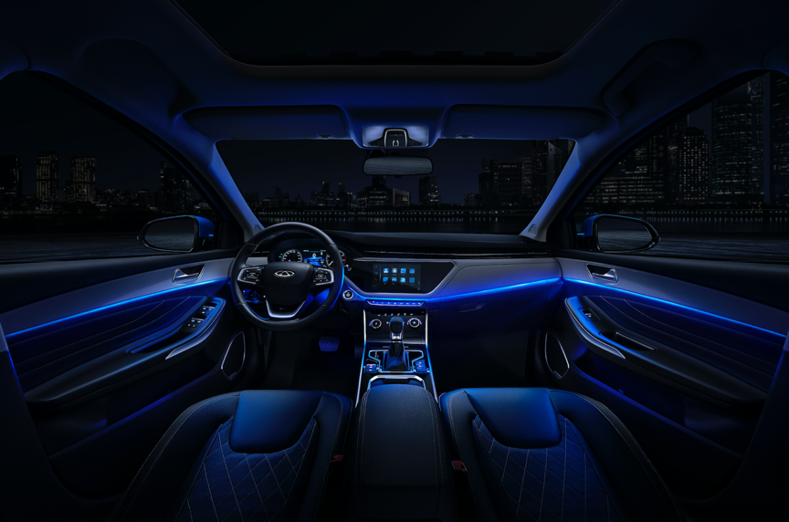 内饰方面,采用全新科技座舱风格,将优雅、自然、高端有机结合起来,形成了具备奇瑞基因的全新内饰设计风格。非对称式未来之翼悬浮仪表台布局,以及由7吋智联多功能液晶仪表、8吋智享空调液晶触控屏及9吋视网膜级高清触控电容中控屏构成三屏环绕式互联视界,使得中控系统更加人性化,给驾驶者以全新的操控体验。
