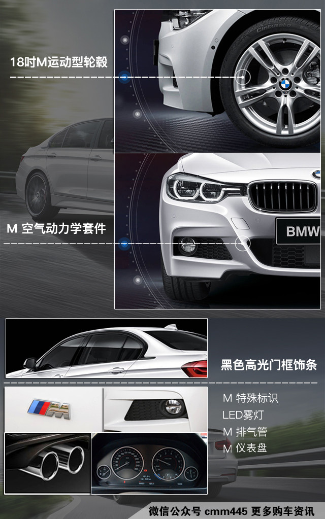 而在配置差异上,与入门级320Li 时尚型相比,除了“M”套件这个主要区别外(如果要自己改装这些套件,没个几万块下不来),配置方面也有一定的区别。其中倒车影像视频、GPS导航系统等如果要独立选装,价格可不低哦。