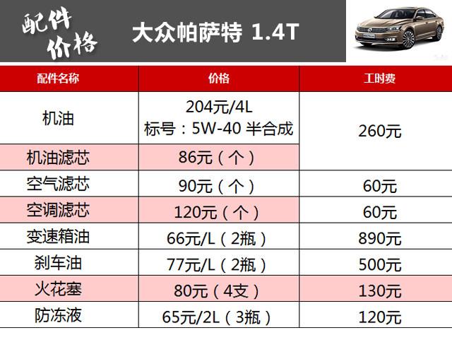 在国内,帕萨特算的是一款家喻户晓的畅销中型车,商务大气的外观形象深入人心,无论口碑还是销量,帕萨特都成为消费者心中不得不考虑的一款车型。帕萨特提供了1.4T、1.8T、2.0T以及停产在售的3.0T发动机,参考意义比较大的是1.4T车型,那么下面来看看帕萨特的保养费用到底需要多少?