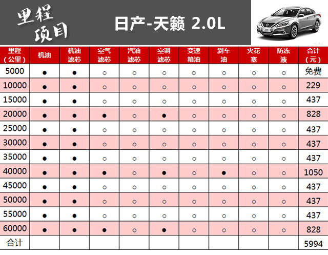 小结:相比德系、美系两位对手,天籁低成本的保养优势是显而易见的,小保养仅需437元,6万公里的保养总成本也没有超过6000元,同时CVT变速箱的技术特性决定了终身免维护的好处,进一步降低了天籁的保养成本。尽管天籁使用的是便宜的矿物机油,但对于天籁的正常工作没有丝毫影响。