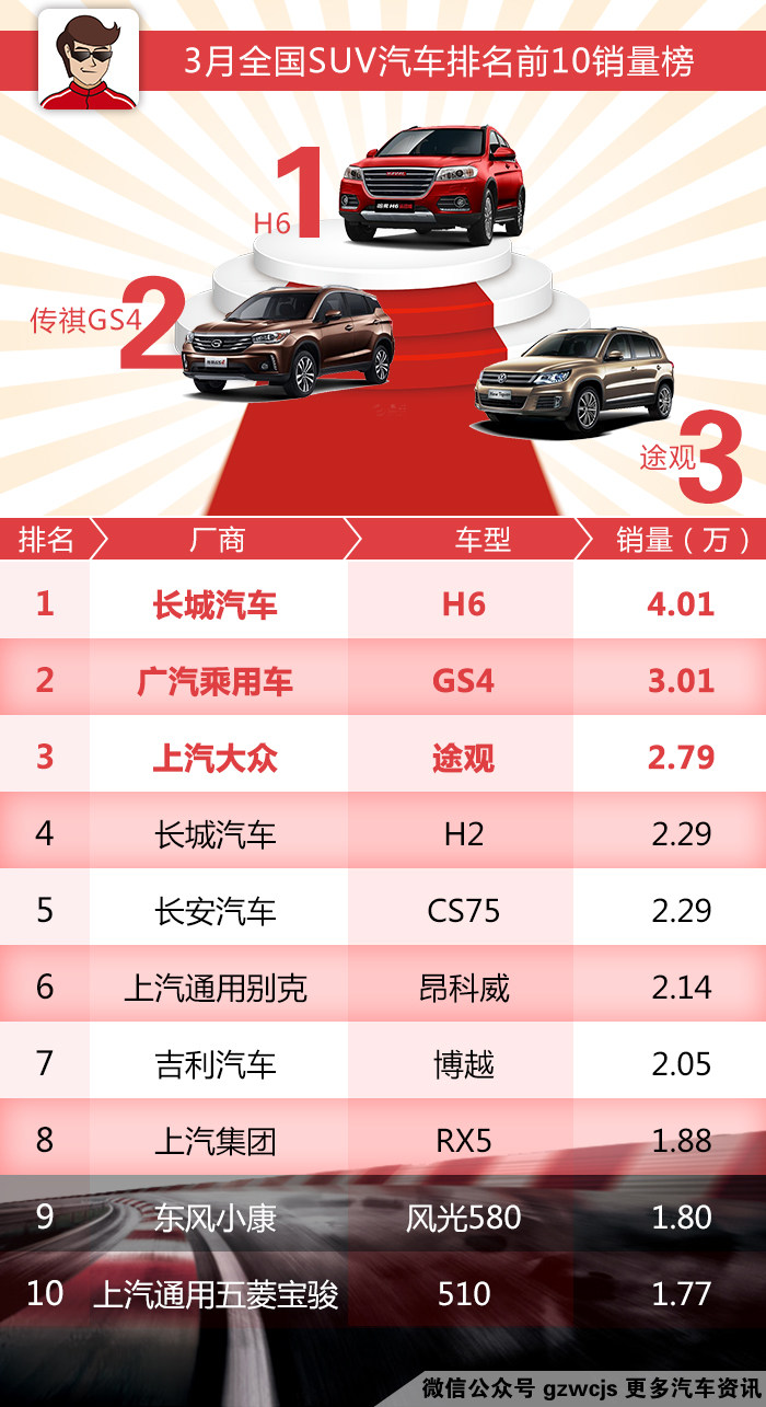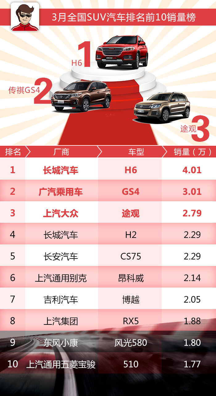 眼瞅着两年一度上海车展即将召开,意味着2017年国内第一场汽车盛会即将拉开序幕。当大家都将目光对焦在东方之珠的时候,各大主机厂也公布了上个月的销量数据,今天叫兽就来和大家分析下3月SUV的销售情况,走起: