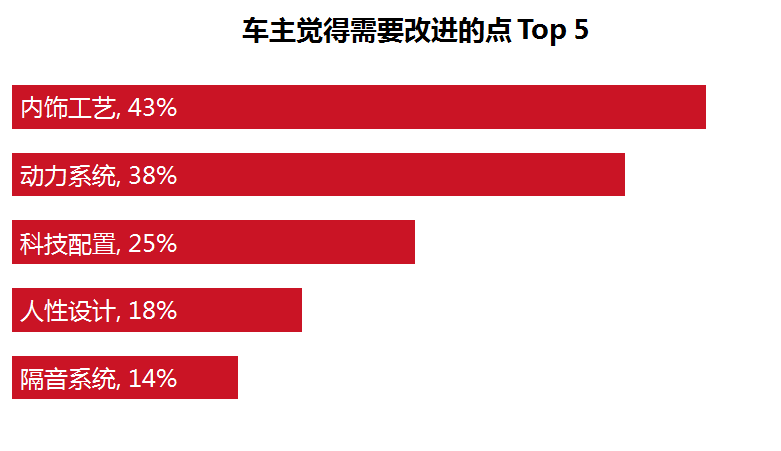反馈第二大的问题就是行驶方面,怠速时车身抖动被投诉颇多,其次是刹车有异响;最后就是胎噪声过大,这又是得自己加钱换套好轮胎就能有效解决的问题。