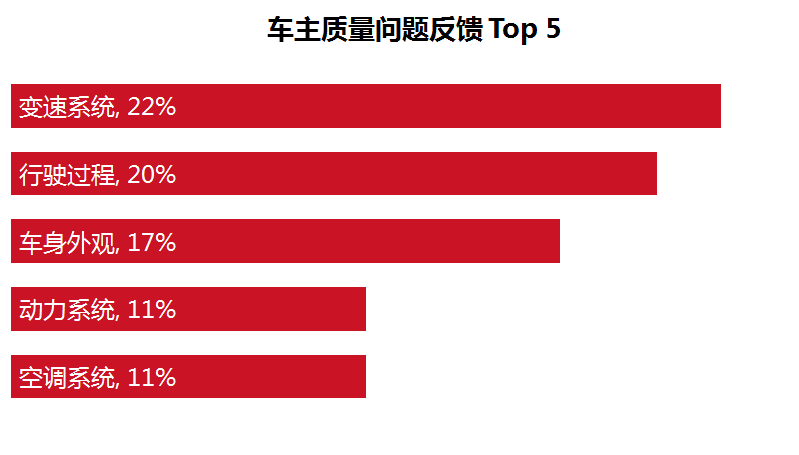 如我们所料,车主投诉最多的问题果然是在变速箱上,自动挡方面反馈最多的是变速箱异响以及换挡延时/不顺畅的问题。这些都得归咎于之前使用的双离合变速箱上,新的6AT在这方面已经改进了不少。