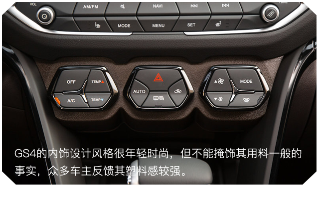 不少车主都觉得传祺GS4的内饰用料相比外观来说有些掉档次,最明显的就是塑料感太强,还时有异响发生等。不过小虎想到与广汽合作的菲克集团,瞬间觉得一切都是有道理的。