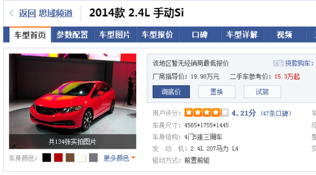 而除了Type R在场一起的还有新款的SI,上一代的SI 2.4L自吸发动机都有207马力,235牛米峰值扭矩。不过19.98万的价格也是考验信仰,比12.18万的当时的手动丐版贵了接近一半。