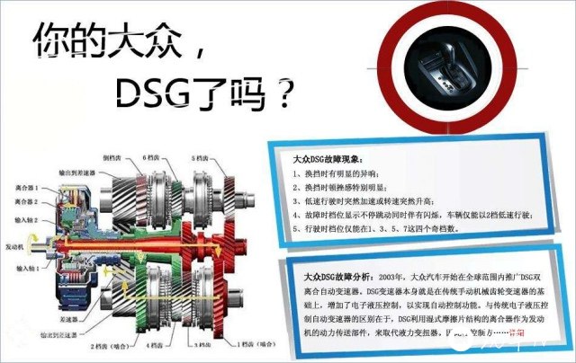 而DSG没有液力变矩器,半联动的状态下只能靠多片离合器联接,这个时候干式和湿式就体现出差别来了,因为干式双离合没有油液冷却,长期半联动导致离合片过热,这样就会产生一系列故障,所以DSG确实是有问题,但主要是干式双离合。