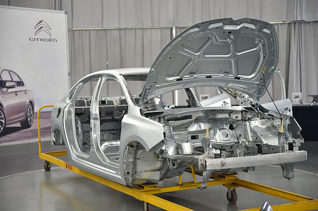 C4世嘉作为一款以家庭消费者为主要消费群体的车型,它从诞生之初就特别注重安全的保护。经过现场工程师的介绍,C4世嘉采用了强度可达1500MPa钢材,强度可是能跟蛟龙号差不多的钢材强度。在被动安全方面构造一个太空舱式样的车体结构,在最根本地方去考虑保护车内的乘客。