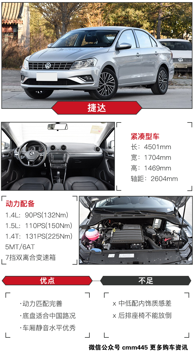 老捷达众所周知的优点就是皮实耐用、维护保养费用低廉,现款捷达也算是继承了这一点,而且由于大众的套娃设计,捷达并不因为定位原因而降低太多档次,开出去面子上绝对是过得去的。此外捷达的底盘滤震不错,在隔音上对比同级对手有比较明显的优势,而驾驶方面则会趋于平淡,开起来四平八稳。