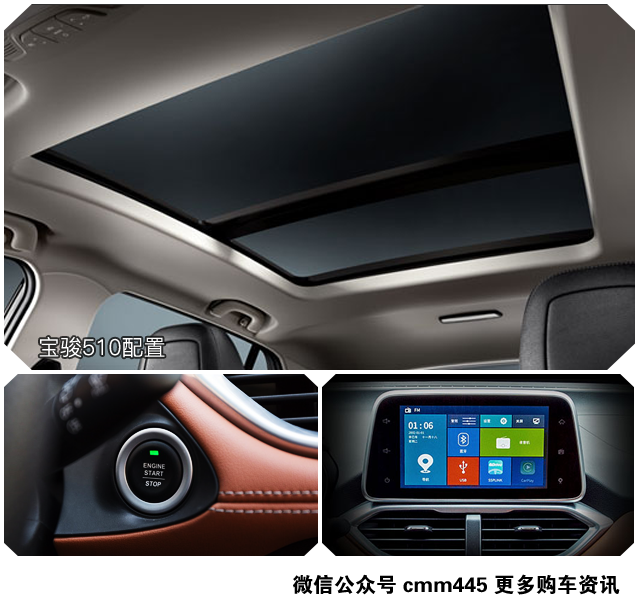 从表格中就可以清晰看出,宝骏510在配置级别上要高出不少,比如年轻人都爱可以躺着看星星月亮的全景天窗、可以随时更换各种姿势的电动调节驾驶座椅、做不可描述的事情不被人看到的后排侧隐私玻璃,还有省油必备的发动机自启停功能等。
