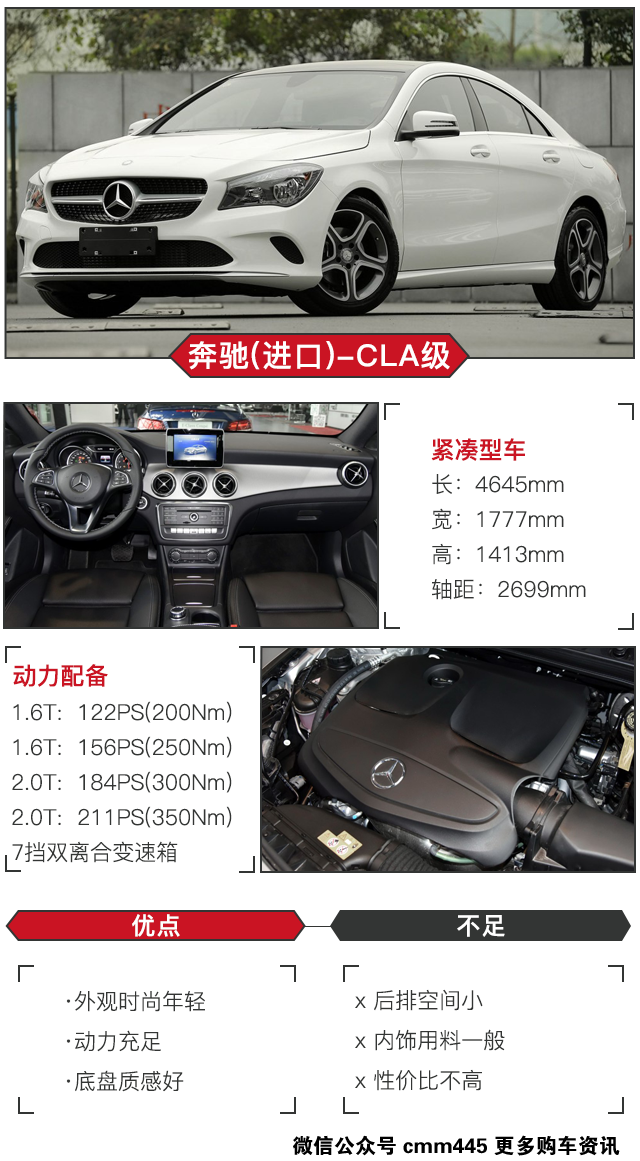 CLA的外形看上去虽然紧凑,但是设计得很矫健,非常有轿跑的范儿。20几万只能买到1.6T+7挡双离合的车型,在动力输出上是弱了一些,但是变速箱的换挡反应很快,降挡非常积极。