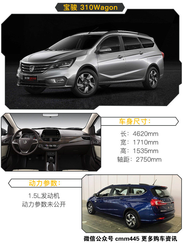 喜欢宝骏310但又觉得它车太短,后排空间小,那买宝骏 310Wagon准没错!它比两厢版的宝骏310长了588mm、高了85mm、轴距还增加了200mm!