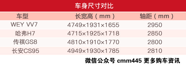 VV7(中) 传祺GS8(优) 长安CS95(优)