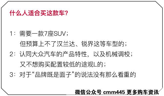 尽管......由于动力总成的沿用,开起来与途观L没什么两样。