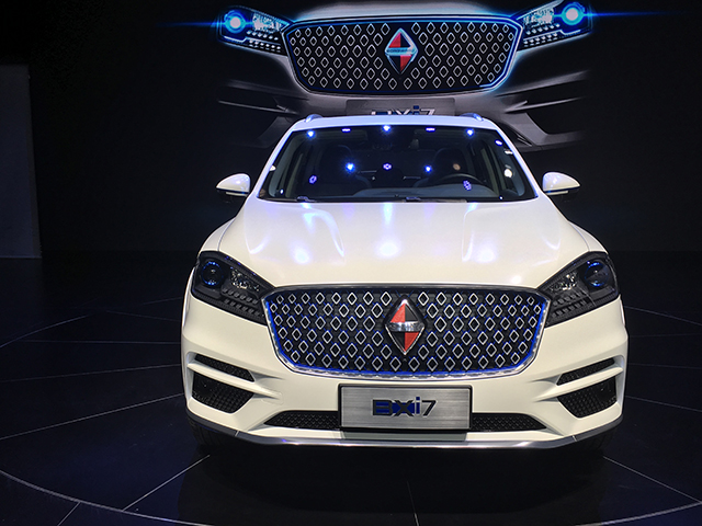宝沃BX7纯电动车型--BXi7亮相2017上海车展。新车整体外观沿用汽油版车型的设计基础,在前格栅采用代表新能源的蓝色菱形进行修饰,增强了新车的辨识度,车尾方面除了左后轮眉上方新增的充电接口以外,和汽油版车型基本保持相同。