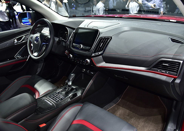 猎豹CS9内饰采用大量平铺直叙的线条,有黑红、黑棕、黑的色调选择。中控巨屏提供良好的阅读效果。方向盘由猎豹CS10的四辐式进化为更具运动气息的三辐式造型,多功能方向盘配备定速巡航控制和蓝牙电话。新车还将配备全景天窗、自动空调、一键启动、电子手刹、自动驻车、胎压监测等实用配置。