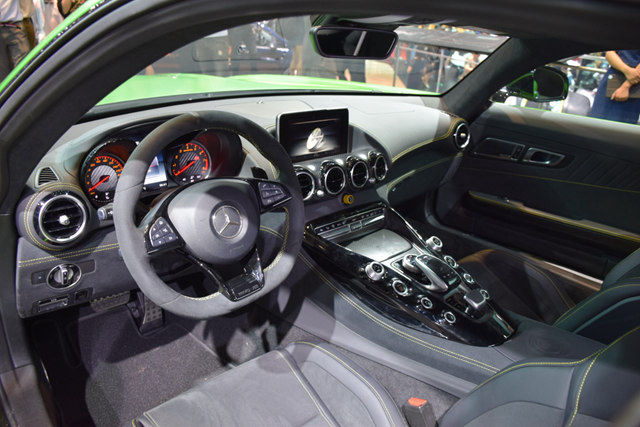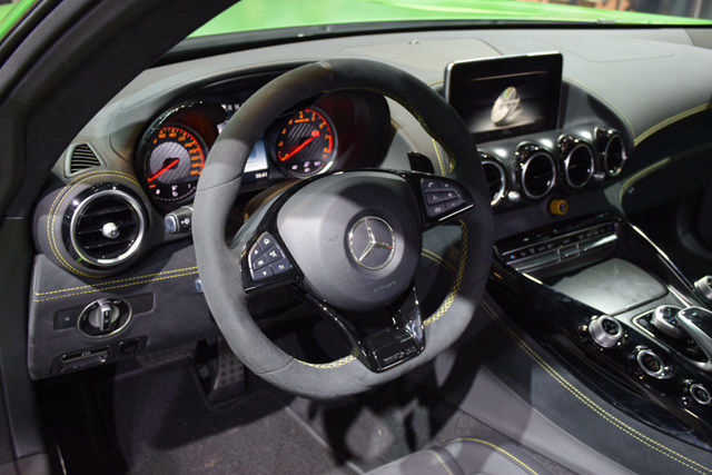 AMG GT R采用了宽体套件,竖条幅格栅设计视觉效果相当霸气,这也是与AMG GT和AMG GT S两款车型明显不同之处,底部格栅采用了贯穿式设计。内饰方面,AMG GT R则延续了普通版车型的设计风格,在细节处有所修改。