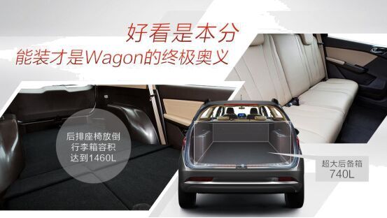 宝骏 310Wagon 长宽高分别为 4620/1710/1535mm,轴距为 2750mm,车身尺寸的增加为车内乘客带来了更舒适的驾乘环境,第二排腿部空间充裕,加上平整的地板,即使 5 人同时出行,安心舒适丝毫不打折扣。除此之外,超大的行李箱空间也是宝骏 310Wagon 的天然优势,其常规容积为 740L。当把第二排座椅完全放平时,后备箱和座椅形成了一个纯平的储物空间,行李箱容积几乎翻了一倍,达到 1460L。多数车都能轻松搭载 5 个人,但是能够同时轻松装得下 5 个人的行李,带上家人完成一场说走就走的旅行,还是需要一辆宝骏 310Wagon。