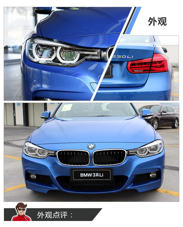 宝马近年的设计不算很出彩,可以说是不出差错就好。开眼角的设计是其最新的设计元素,经典的双肾造型配合天使大灯就是其经典的形象了。长轴距车身最经典的还是其霍氏拐角。车尾除了318Li终于不是单出排气管了。