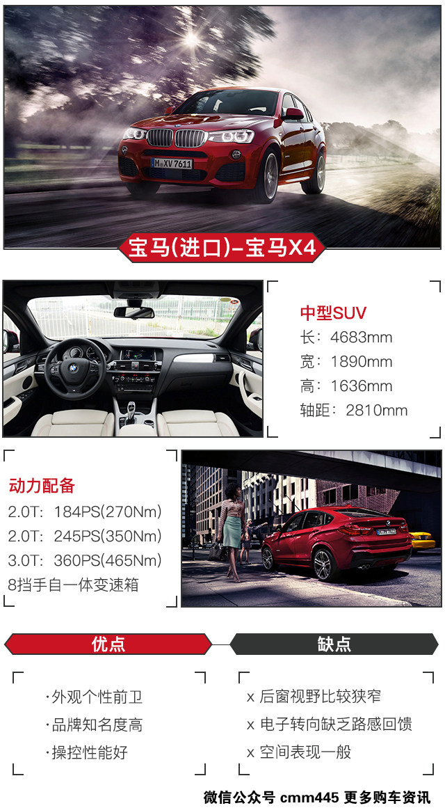 不知你们有没发现启辰T90和宝马X4在外形上有几分相似,确实整个车身的腰线以及尾部还是挺像。其实X4并不宝马首款的跨界SUV,在X6取得成功之后,宝马将再次在这领域发力,毕竟X6售价较高,为了满足不同人群购车预算,所以X4就来了。宝马X4和X3共享平台,在配置、内饰、动力等方面都有着相似之处,最大不同宝马X4是走运动风格。