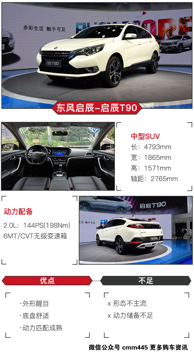 启辰T90几乎保留较多概念车的元素,用在现今造型也相当前卫,超前的设计,对于一位不懂车的人来说甚至是不敢相信这是一辆国产车。启辰也把她称之为轿跑型SUV,和普通的SUV相比确实要亮眼不少,其实它本质上就是一款特别注重舒适性的家用SUV。作为一款中型SUV来说,它的售价并不高,具有一定的竞争力,但不足之处就是中低配车型配置太低以及动力较弱。但就冲这外形以及舒适性就值得买买买!
