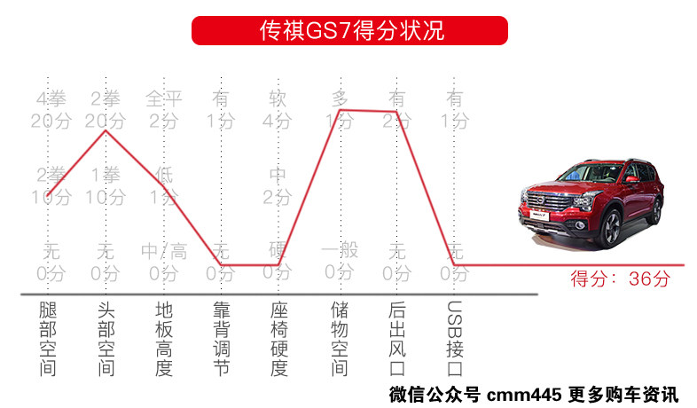 万众期待的传祺GS7却拿了个倒数第一,除了空间表现最差之外,偏硬的座椅并不舒适,作为一台5排中型SUV来说靠背角度不能调节,地板没有全平、USB接口的缺失,传祺GS7的后排乘坐起来确实让人不爽。