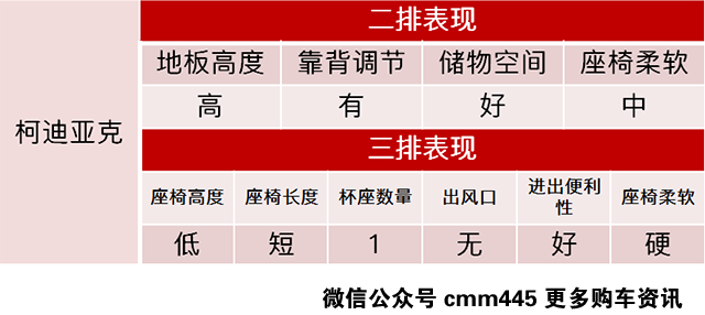 与途观L同样出自MQB平台的柯迪亚克,车身尺寸基本相当,动力系统也是完全一样未上市就已经相当火爆了。如今更加便宜的价格相信会令不少人喜爱的,不过它的第三排空间就很鸡肋了,娇小的妹纸坐着都顶腿了,内部空间略显压抑。